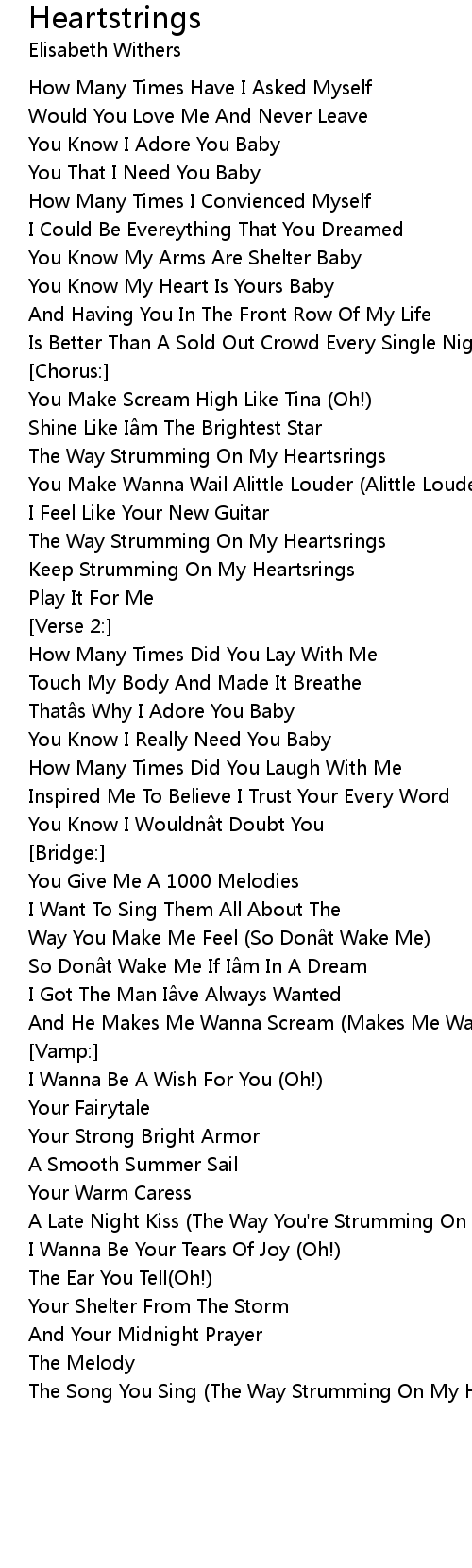 | A Late Night Kiss The Way You' re Strumming On My Heartstrings | |