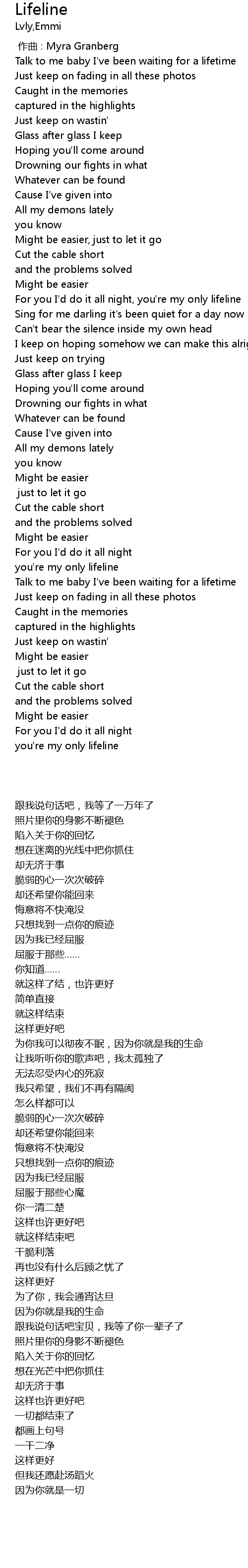 | [00:46.16] | For you I'd do it all night, you're my only lifeline |
