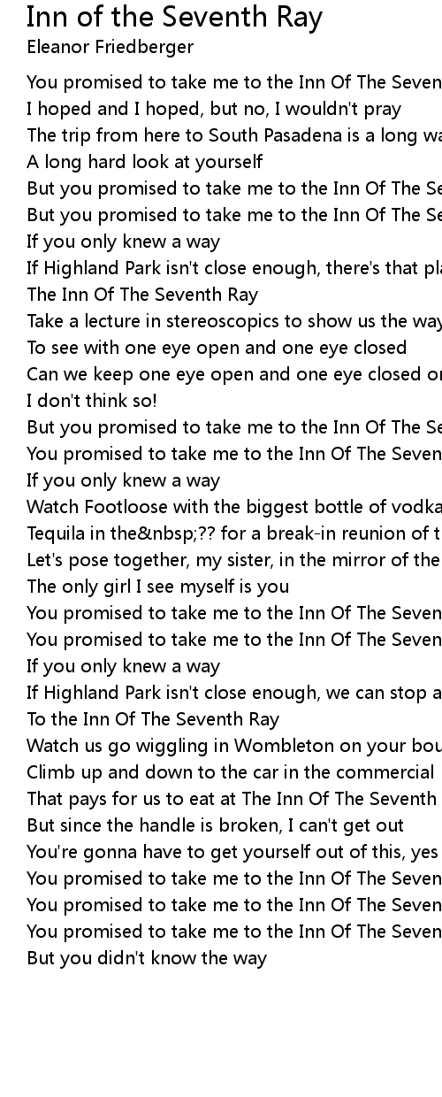 You promised to take me to the Inn Of The Seventh Ray |