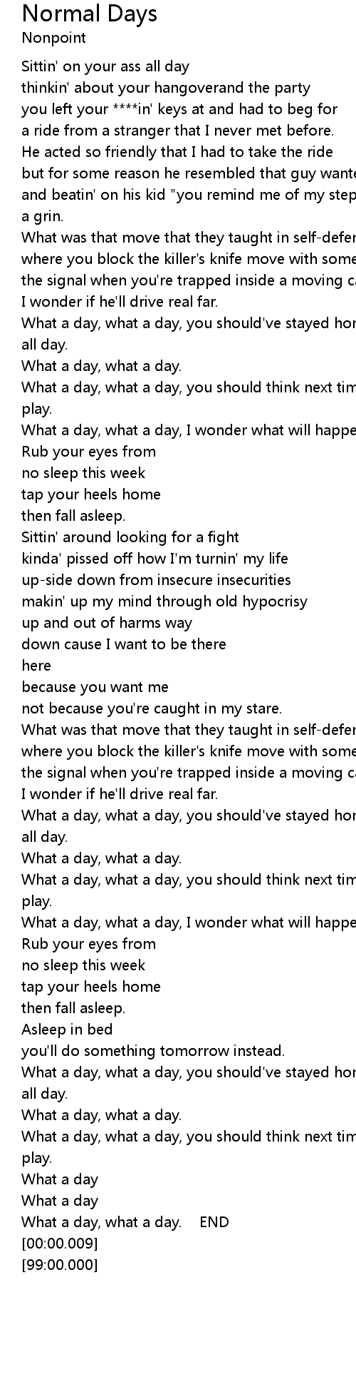 Normal Days Lyrics