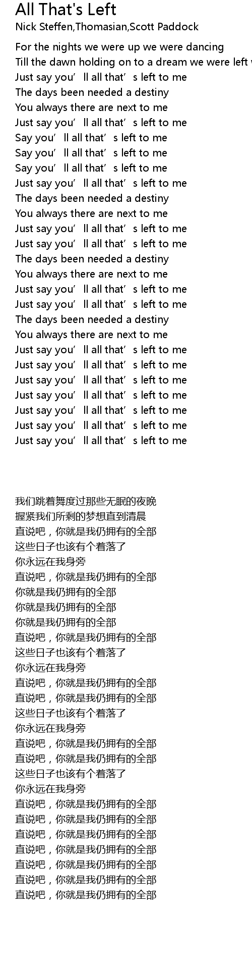 | [00:10] | Till the dawn holding on to a dream we were left with |