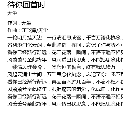 | kàn nǐ yǐ jīng jiàn xíng jiàn yuǎn, zài huí shǒu bù guò jǐ bǎi nián, bù wàng bù wǎng bù wǎng nián | |