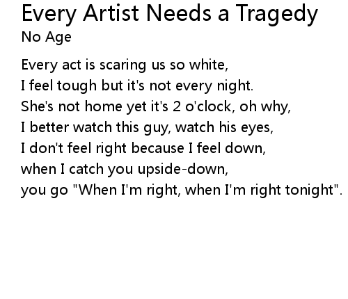 | Song | Every Artist Needs a Tragedy |