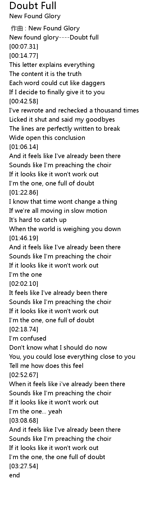 | [00:00.00] | zuò qǔ : New Found Glory |
