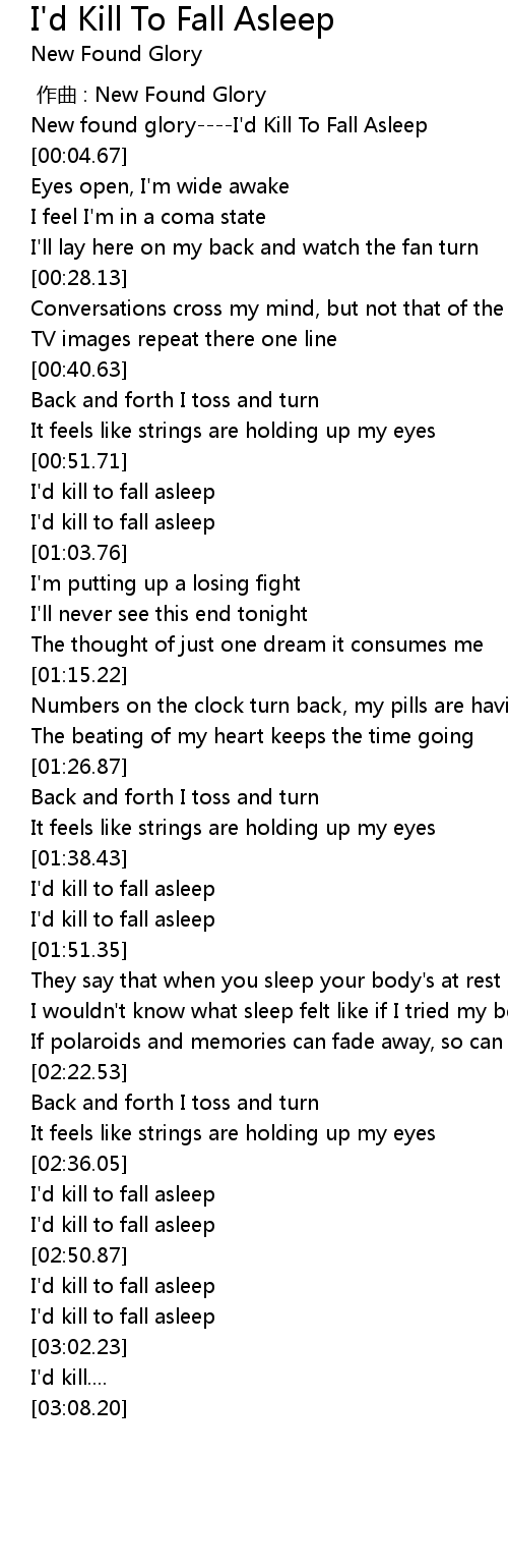 | [00:01.39] | New found glory----I'd Kill To Fall Asleep |