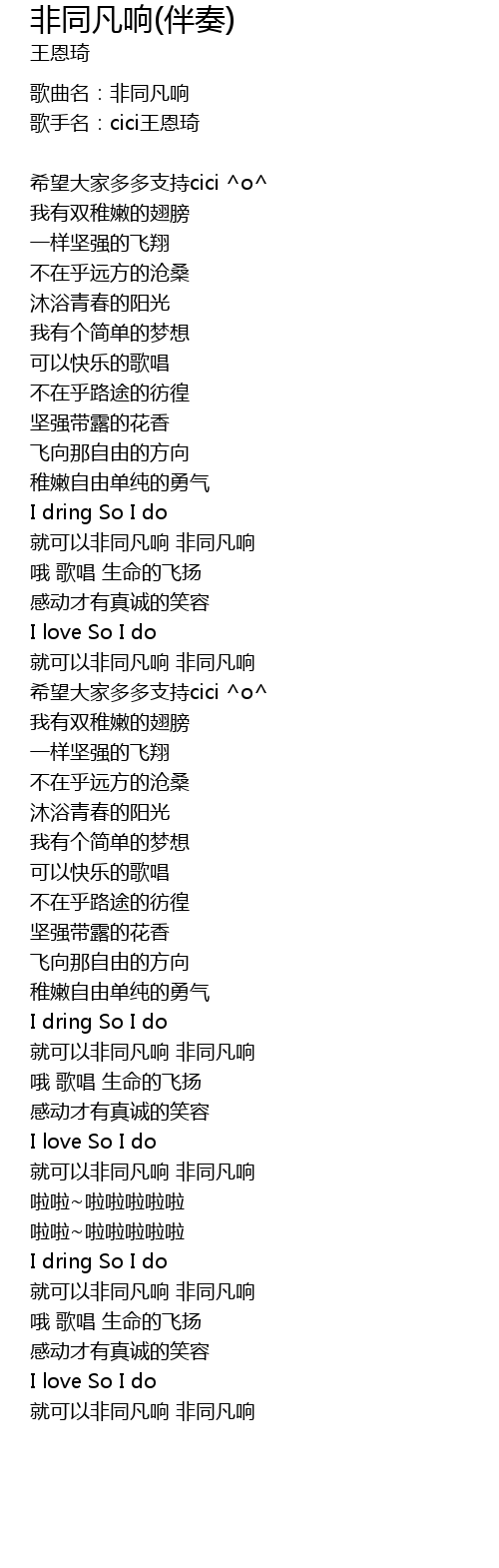 | gē qǔ míng: fēi tóng fán xiǎng | |