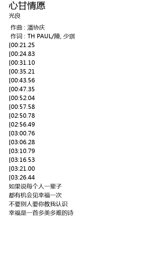 | [00:01.00] | 作词 : TH PAUL/陳, 少琪 |