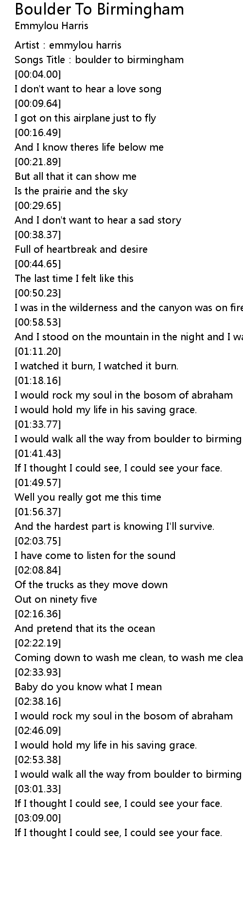 | [00:02.37] | Songs Title: boulder to birmingham |