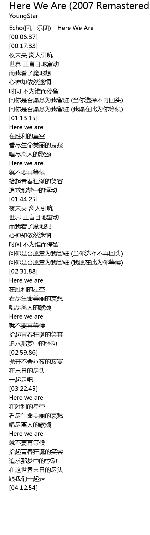 | [00:00.23] | Echo(回声乐团) - Here We Are |