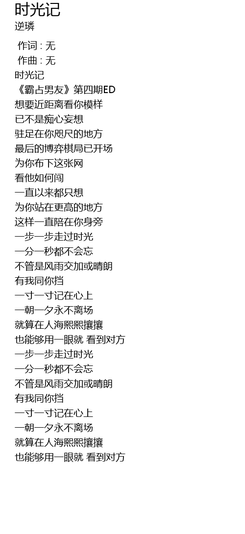 | [01:04.094] | yī fēn yī miǎo dōu bú huì wàng |