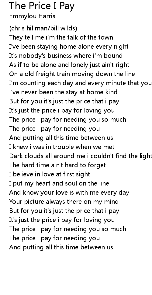 The Price I Pay Lyrics