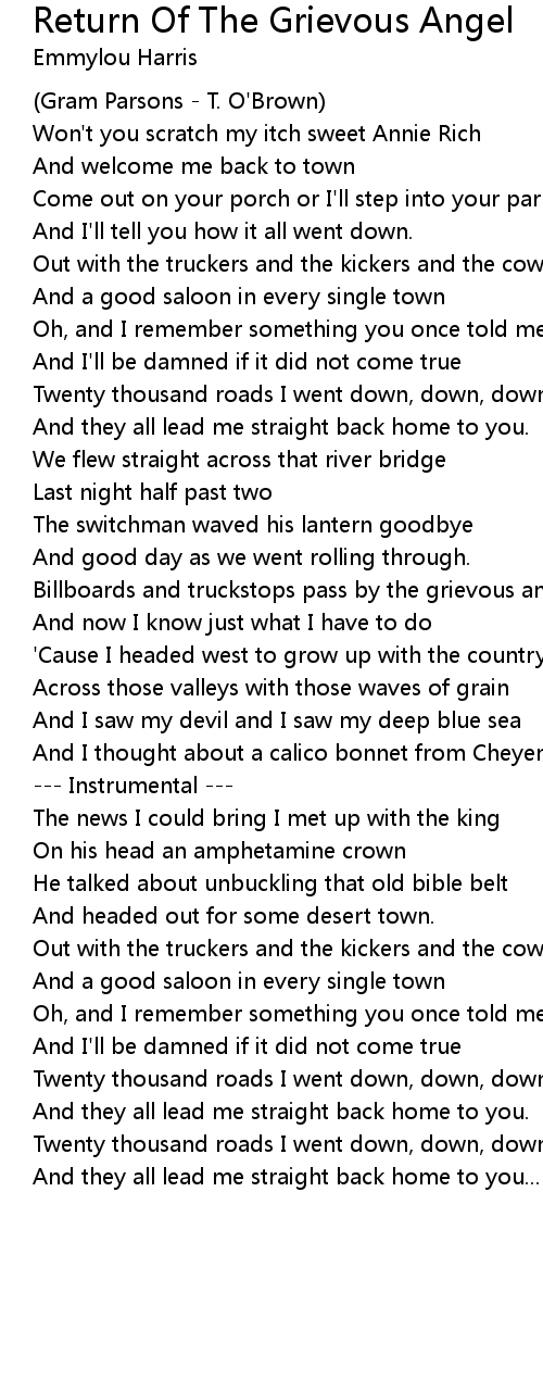 Billboards and truckstops pass by the grievous angel |