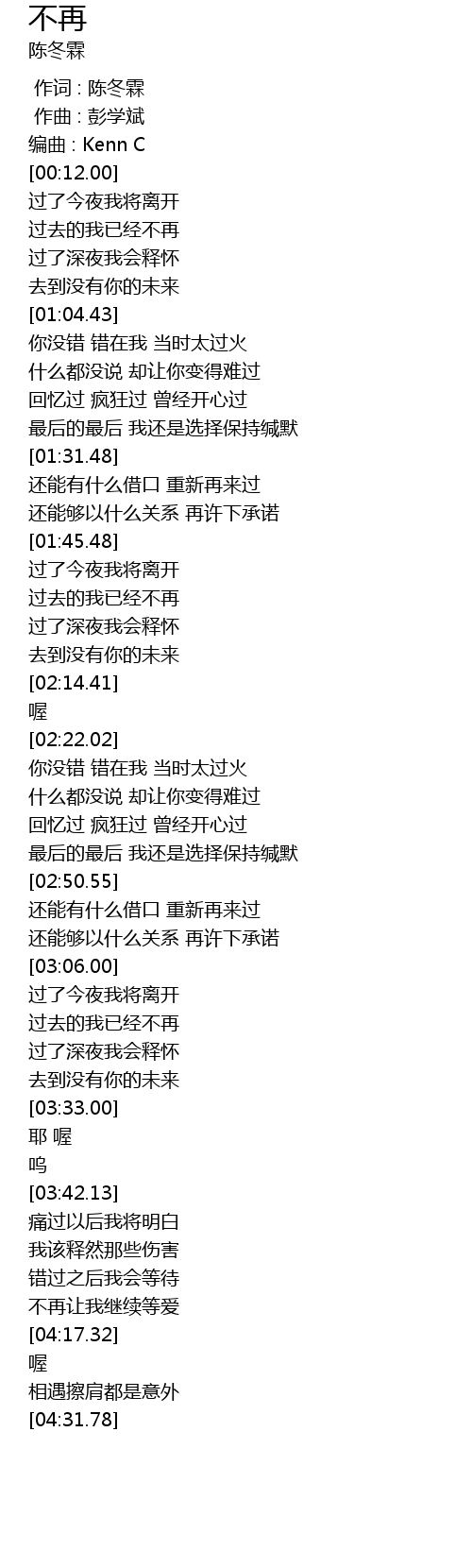 | [00:02.00] | 编曲 : Kenn C |