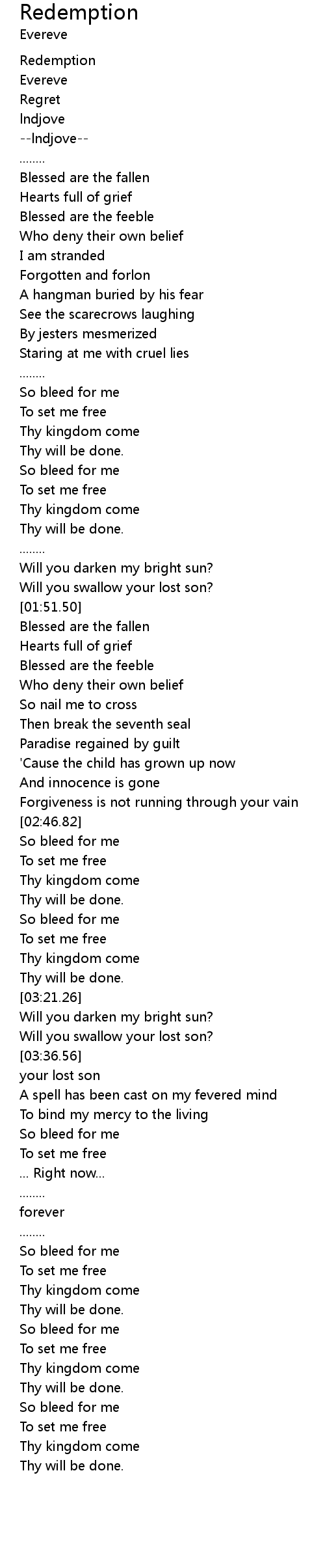 | [03:02.95] | Thy will be done. |