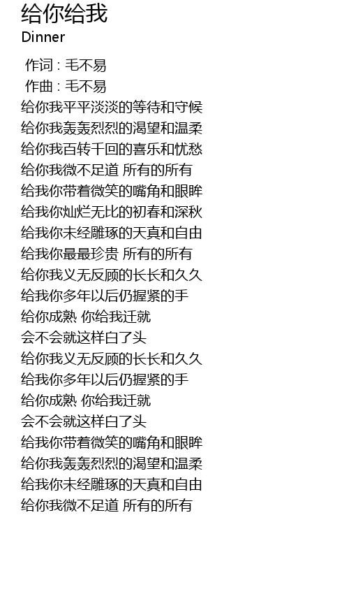 | [01:33.940] | 给你我义无反顾的长长和久久 |