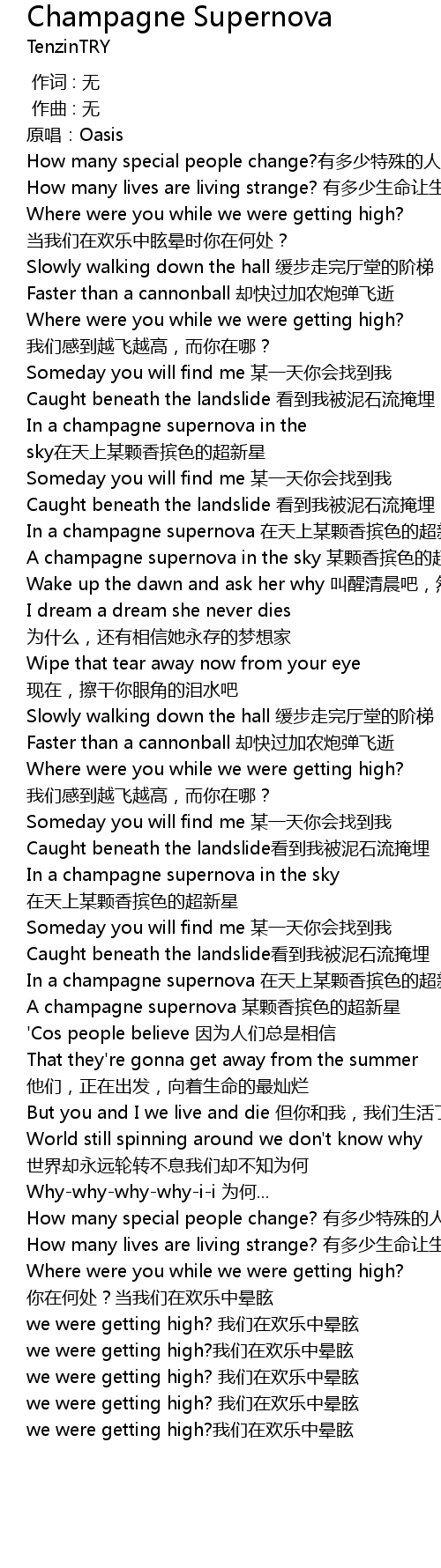| [00:59.400] | In a champagne supernova in the sky zai tian shang mou ke xiang bin se de chao xin xing |