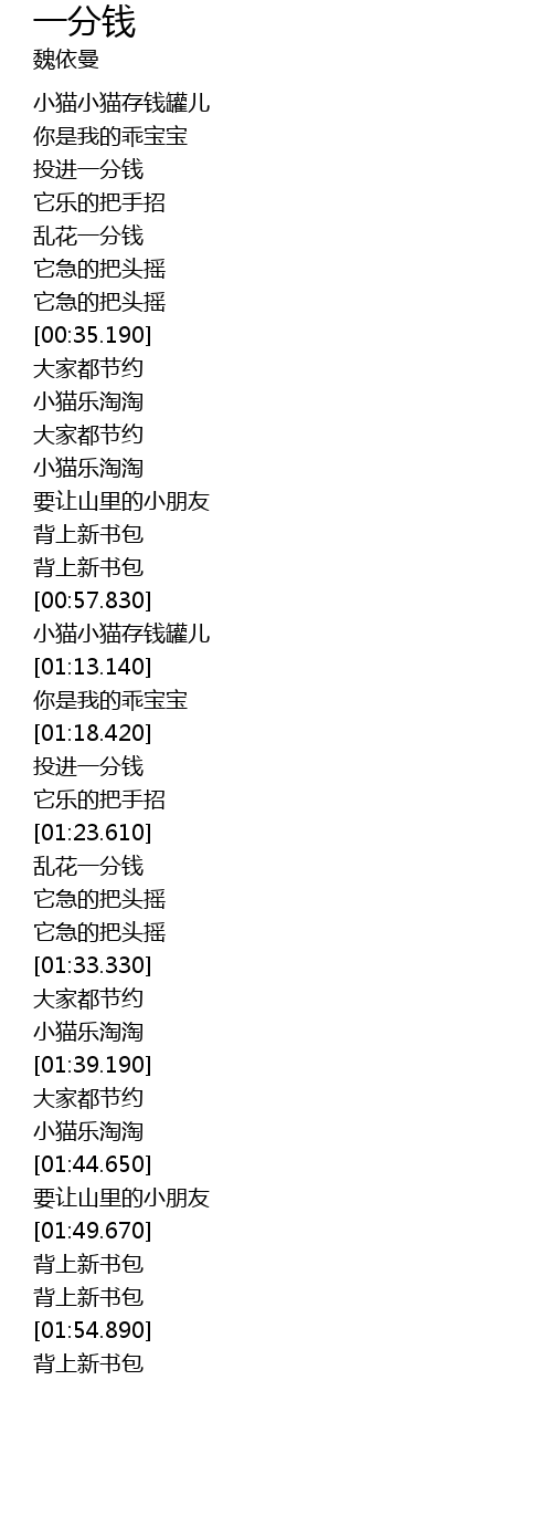 | [01:08.740] | 小猫小猫存钱罐儿 |