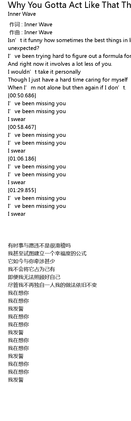 | [00:00.000] | 作词 : Inner Wave |