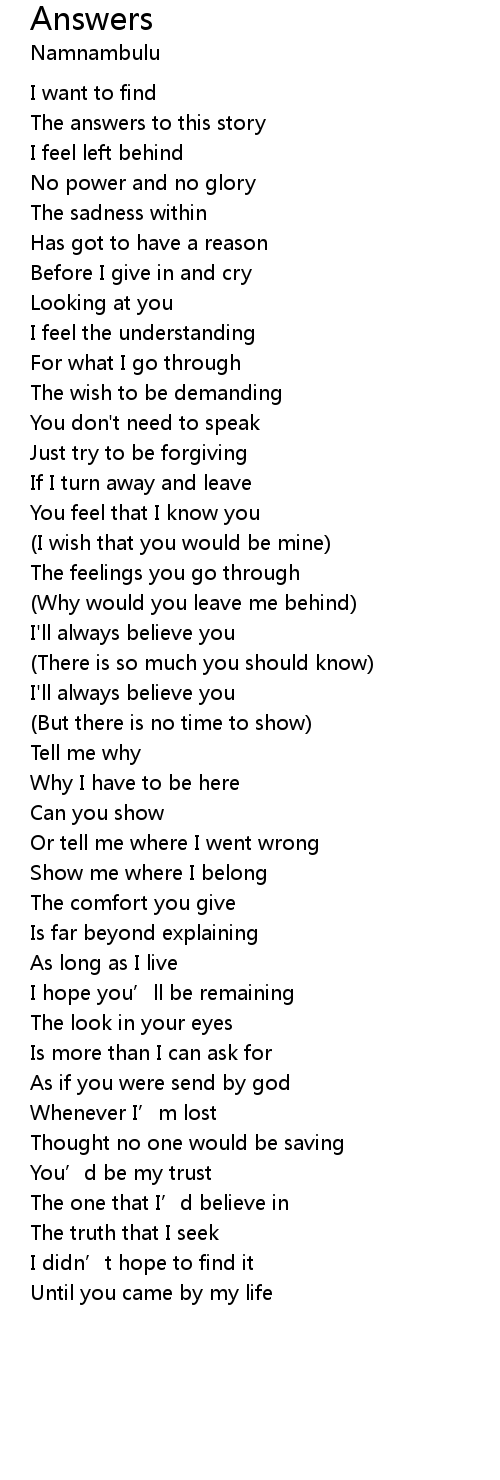 | Song | Answers |