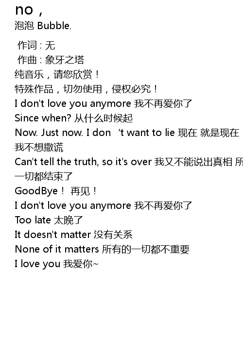 | [01:33.613] | I don't love you anymore 我不再爱你了 |