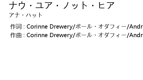 | [00:00.000] | 作曲 : Corinne Drewery/ポール・オダフィー/AndrewConnell |