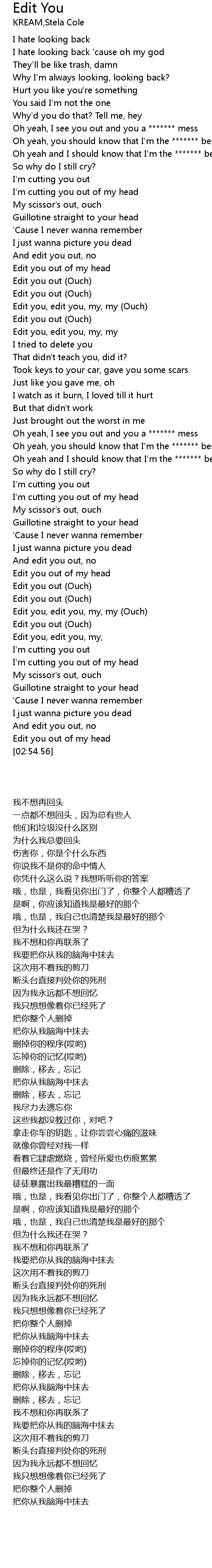 | [02:18.57] | Edit you out (Ouch) |