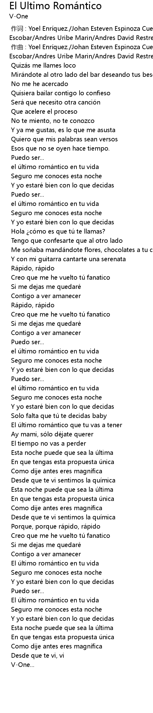 | [01:38.224] | el ú ltimo romá ntico en tu vida |