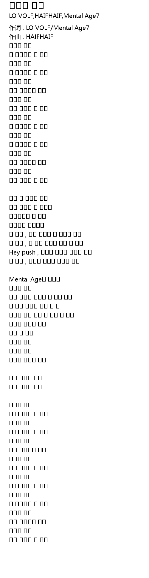 | 作词 : LO VOLF/Mental Age7 | |