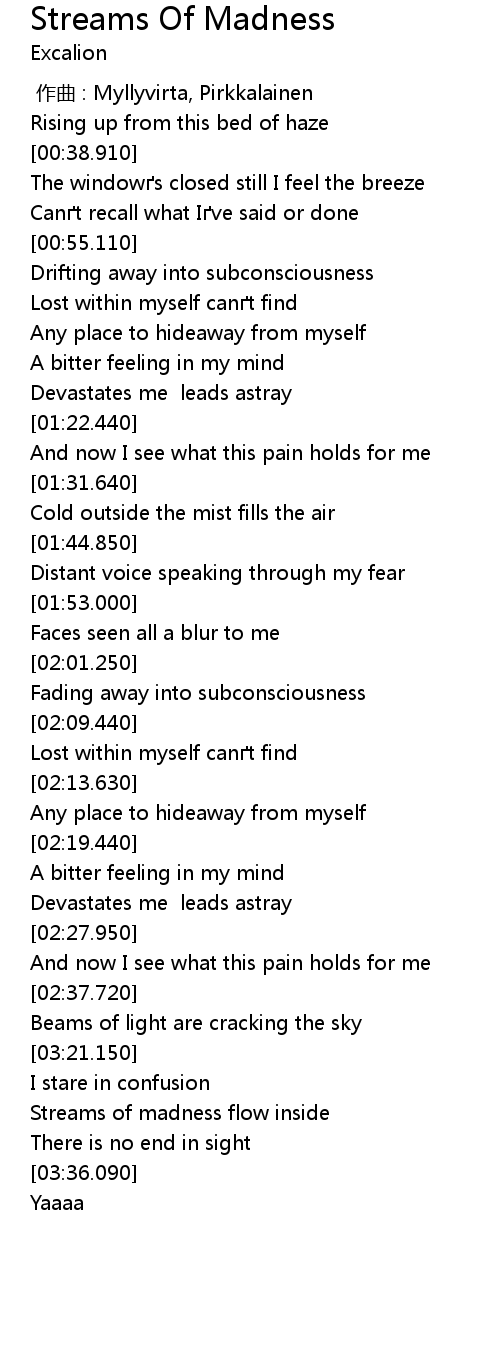 | [00:00.00] | 作曲 : Myllyvirta, Pirkkalainen |