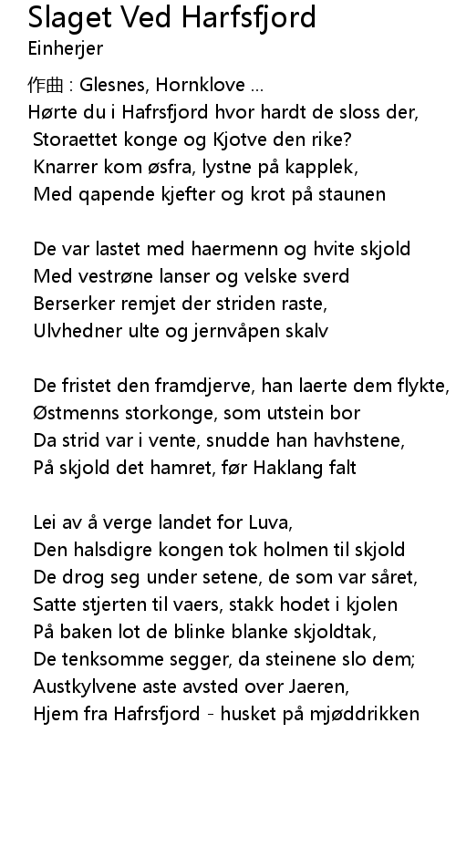 | Song | Slaget Ved Harfsfjord |