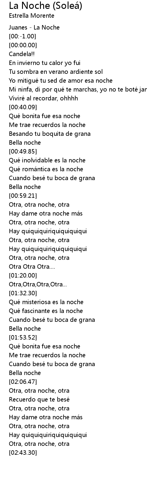| [02:01.37] | Bella noche |