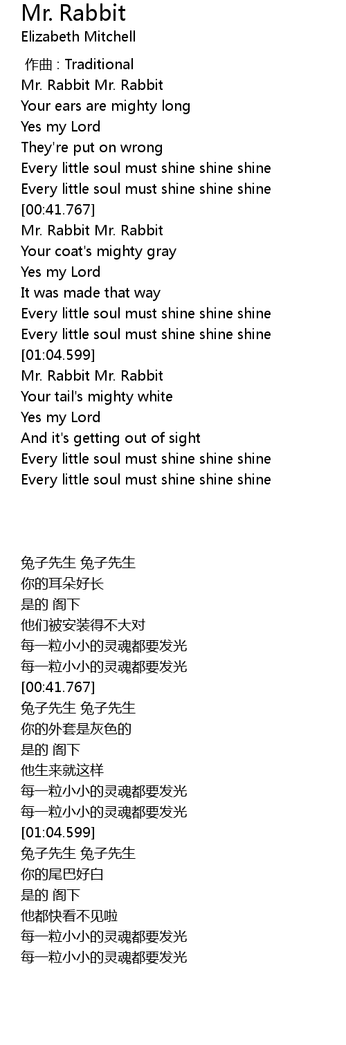 | [00:43.127] | Mr. Rabbit Mr. Rabbit |