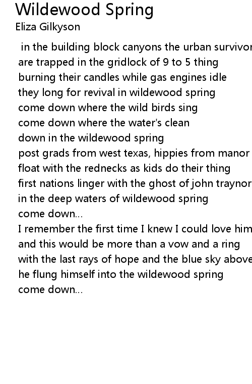 | Song | Wildewood Spring |