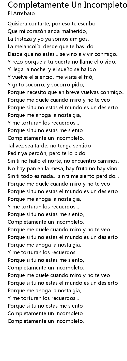 | Song | Completamente Un Incompleto |