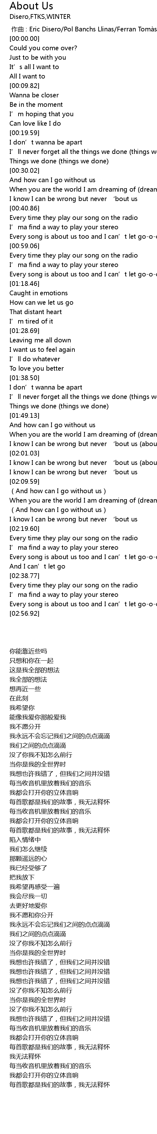 | [02:49.40] | Every song is about us too and I can' t let goooooh, oooooh |