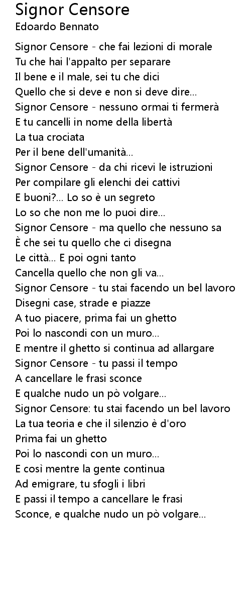 | Signor Censore - tu stai facendo un bel lavoro | |