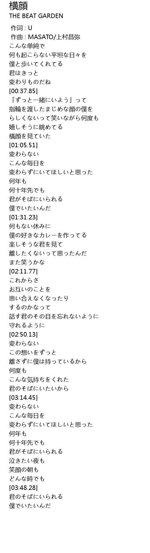 | [00:01.000] | zuo qu : MASATO shang cun chang mi |