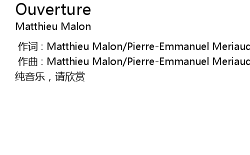 | [00:01.000] | zuò qǔ : Matthieu Malon PierreEmmanuel Meriaud |