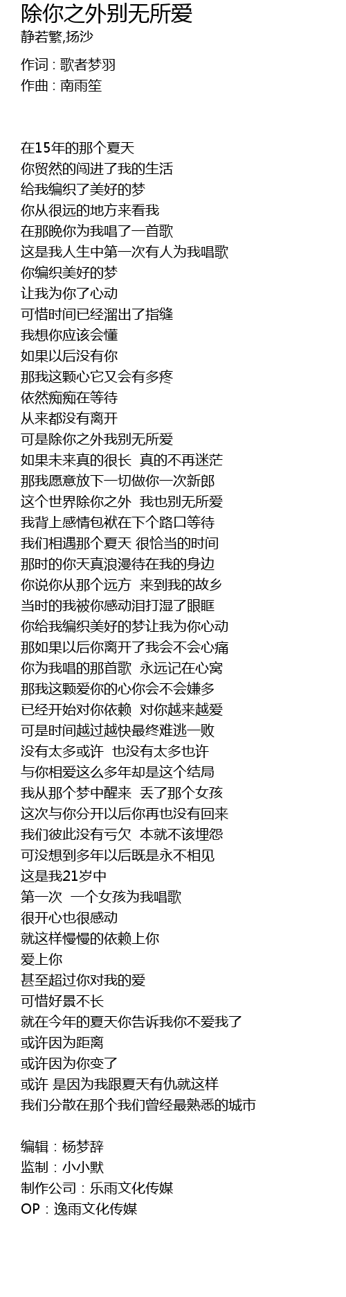 | kě shì chú nǐ zhī wài wǒ bié wú suǒ ài | |