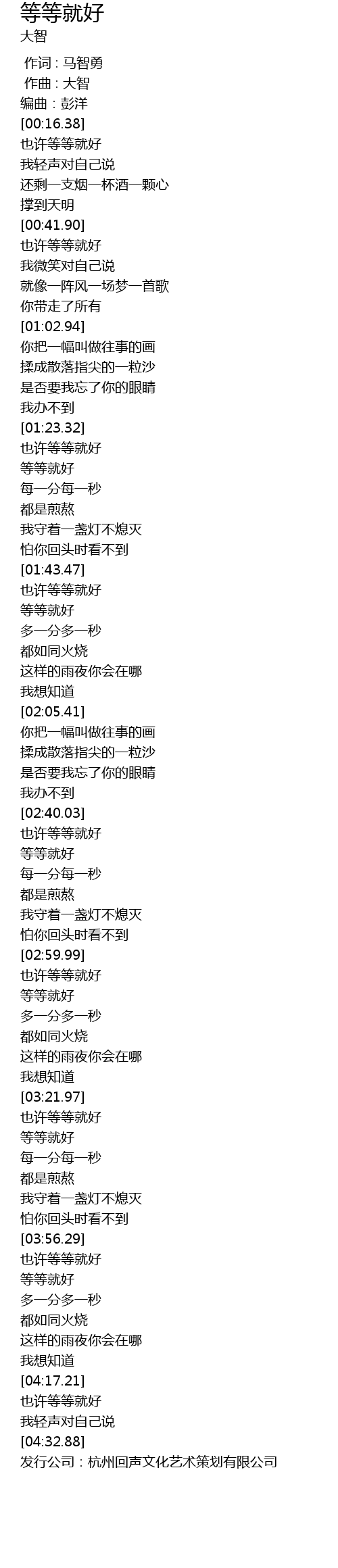 | [04:33.88] | 发行公司:杭州回声文化艺术策划有限公司 |