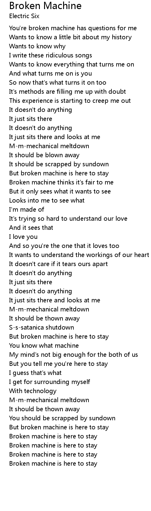 You're broken machine has questions for me |