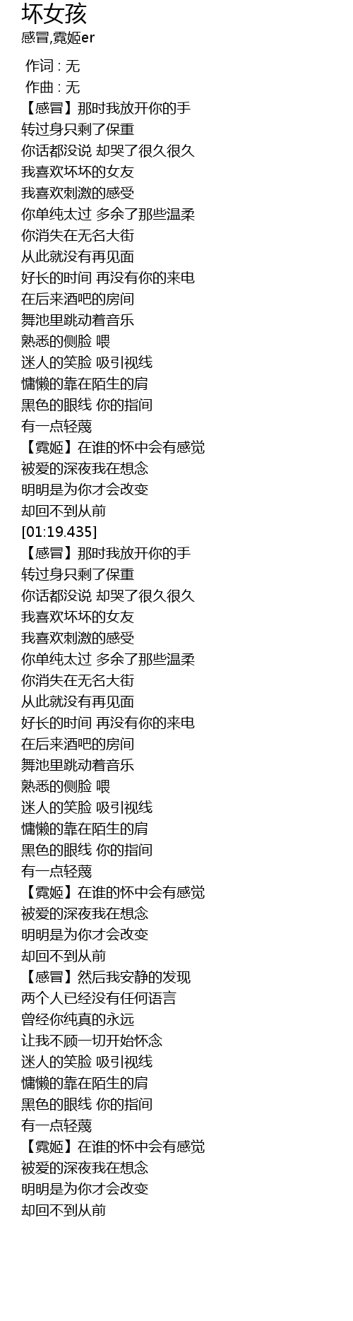 | [01:51.685] | 【感冒】那时我放开你的手 |