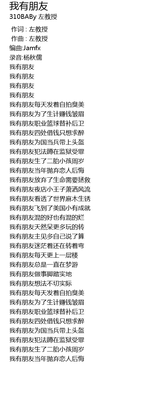 | [00:33.685] | wǒ yǒu péng yǒu sì chù jiè qián zhǐ xiǎng qiú zuì |