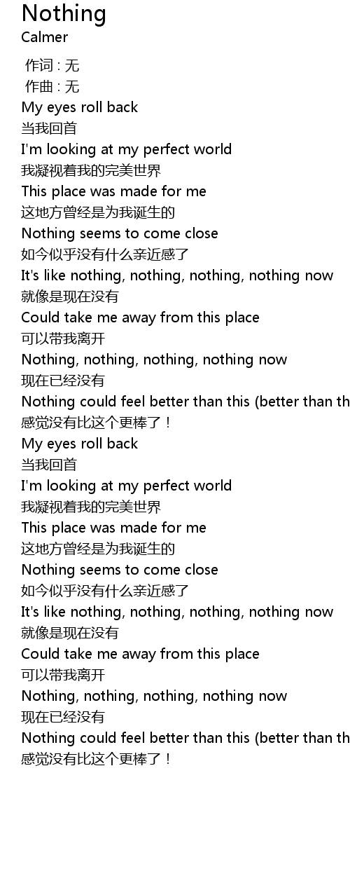 | [02:15.786] | It' s like nothing, nothing, nothing, nothing now |