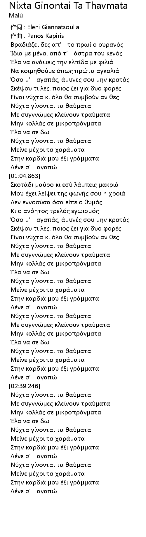 作词 : Eleni Giannatsoulia |