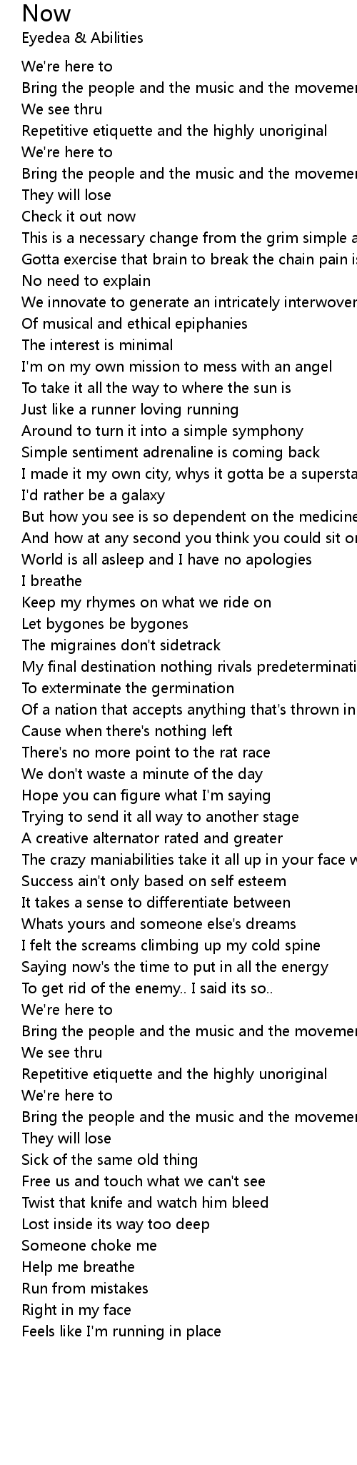 Saying now's the time to put in all the energy |