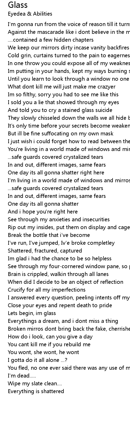 And told you to cry a stained glass suicide |