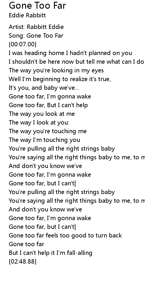 Song: Gone Too Far |