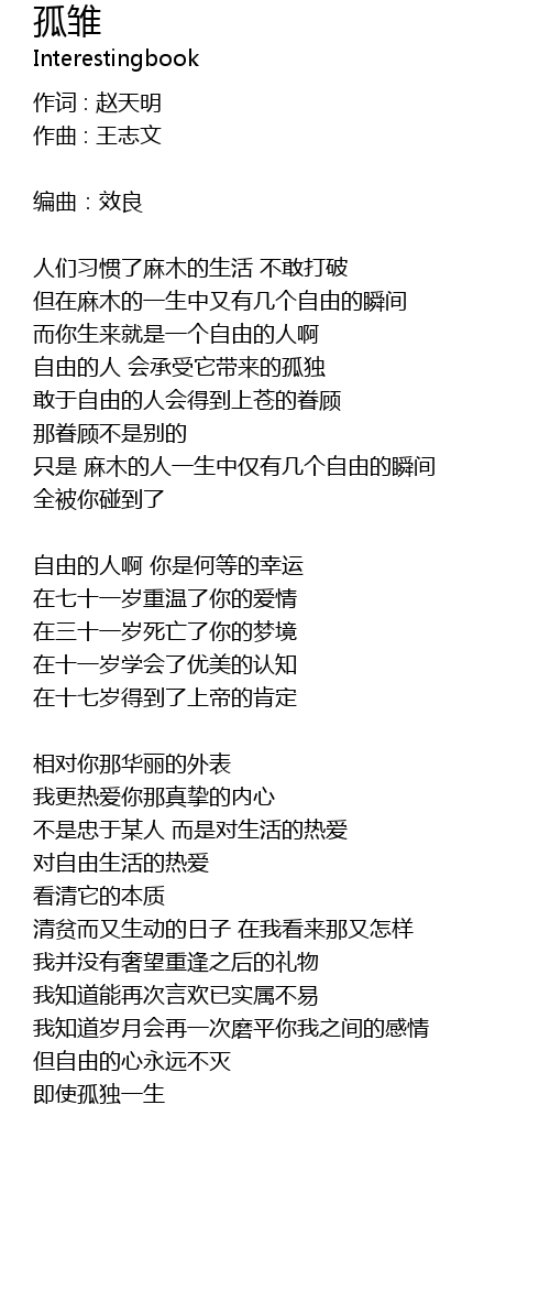 | zì yóu de rén huì chéng shòu tā dài lái de gū dú | |