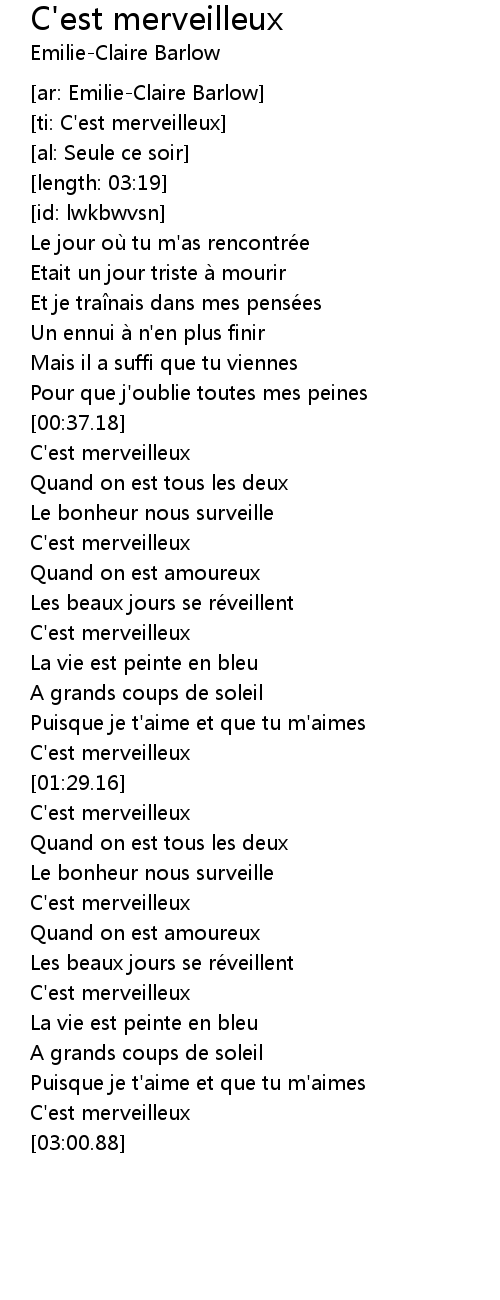 | [02:42.87] | Puisque je t'aime et que tu m'aimes |